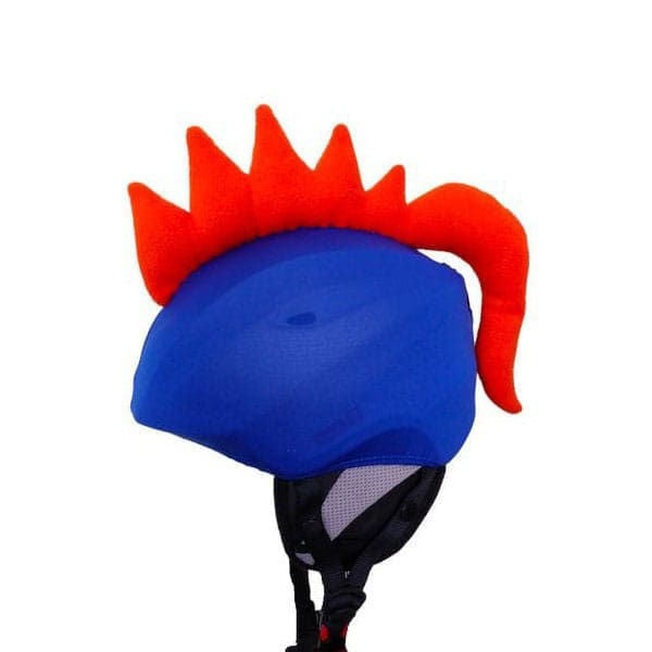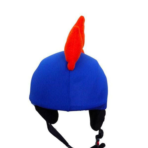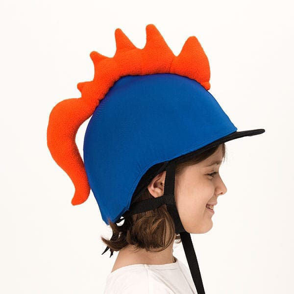 BLUE DINO HELMET COVER Universal helmet covers are made from quality, elastic material. They are ideal for technically any junior size sport helmet including skiing, ice skating, snowboarding, horseback riding, roller skating, scootering, cycling and more. This blue and orange colored model resembles a little dinosaur. Is your little boy crazy for dinos? This helmet cover was made just for him!
