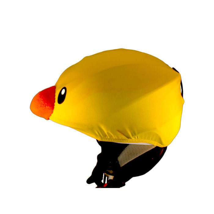 DUCKLING HELMET COVER (UNIVERSAL SIZE) Universal size helmet covers are made from top quality elastic, SPF 50 UV resistant material with lasting colors. They are ideal for any sport helmet. It is comfortable for both children and adults thanks to the universal size. This yellow colored model resembles a cute rubber duck.