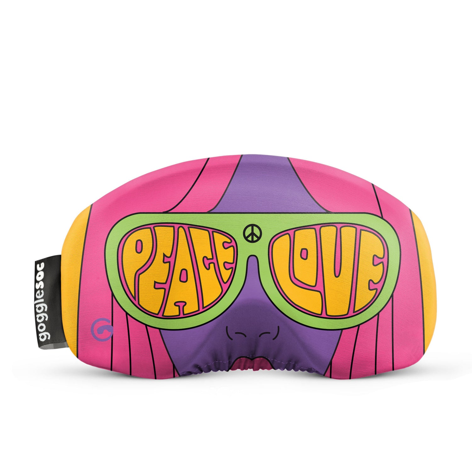 PEACE & LOVE SOC Oh so groovy baby! If you are you like us and just leave your goggles on your helmet all the time? No worries - a gogglesoc can be worn even when your goggles are being stored on your helmet.